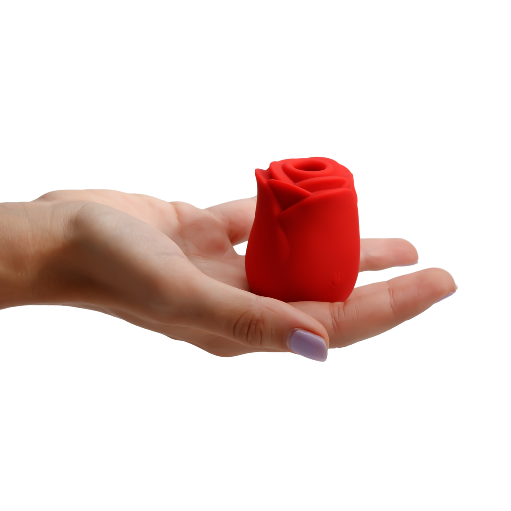 Stimolatore clitorideo a forma di rosa che simula il sesso orale.