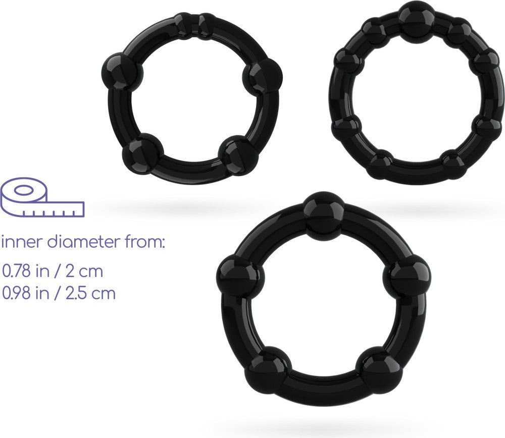 I cockring del set Triple Bead possono essere usati insieme o separatamente: prova diverse combinazioni e goditi finalmente un rapporto senza intoppi e senza troppi pensieri.
