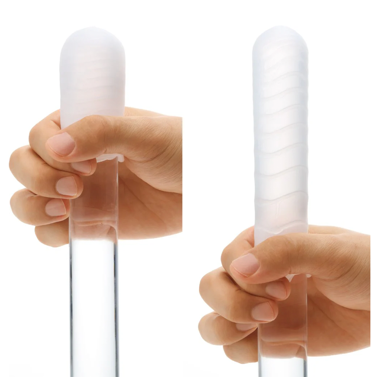 Wave Line è una guaina morbida e trasparente, realizzata in elastomero e per questo facilmente adattabile a qualsiasi taglia; possiede dei rilievi lineari e leggermente ondulati che ti faranno provare sensazioni intense e avvolgenti. Hexa-Brick, invece, possiede intricate protuberanze a forma esagonale che ti regaleranno un piacere tutto da scoprire.